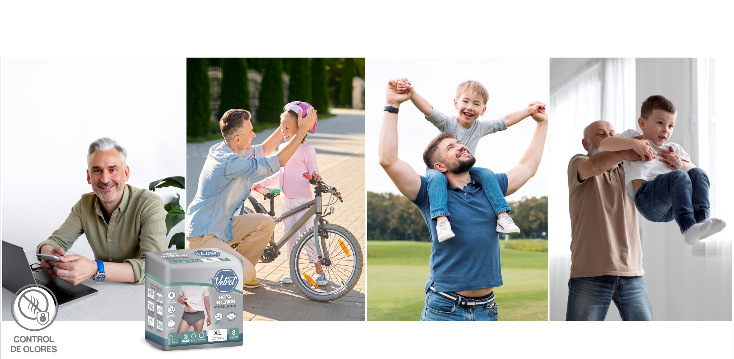 Productos recomendados: Ropa interior absorbente ajustable, que ofrece seguridad en todo momento.